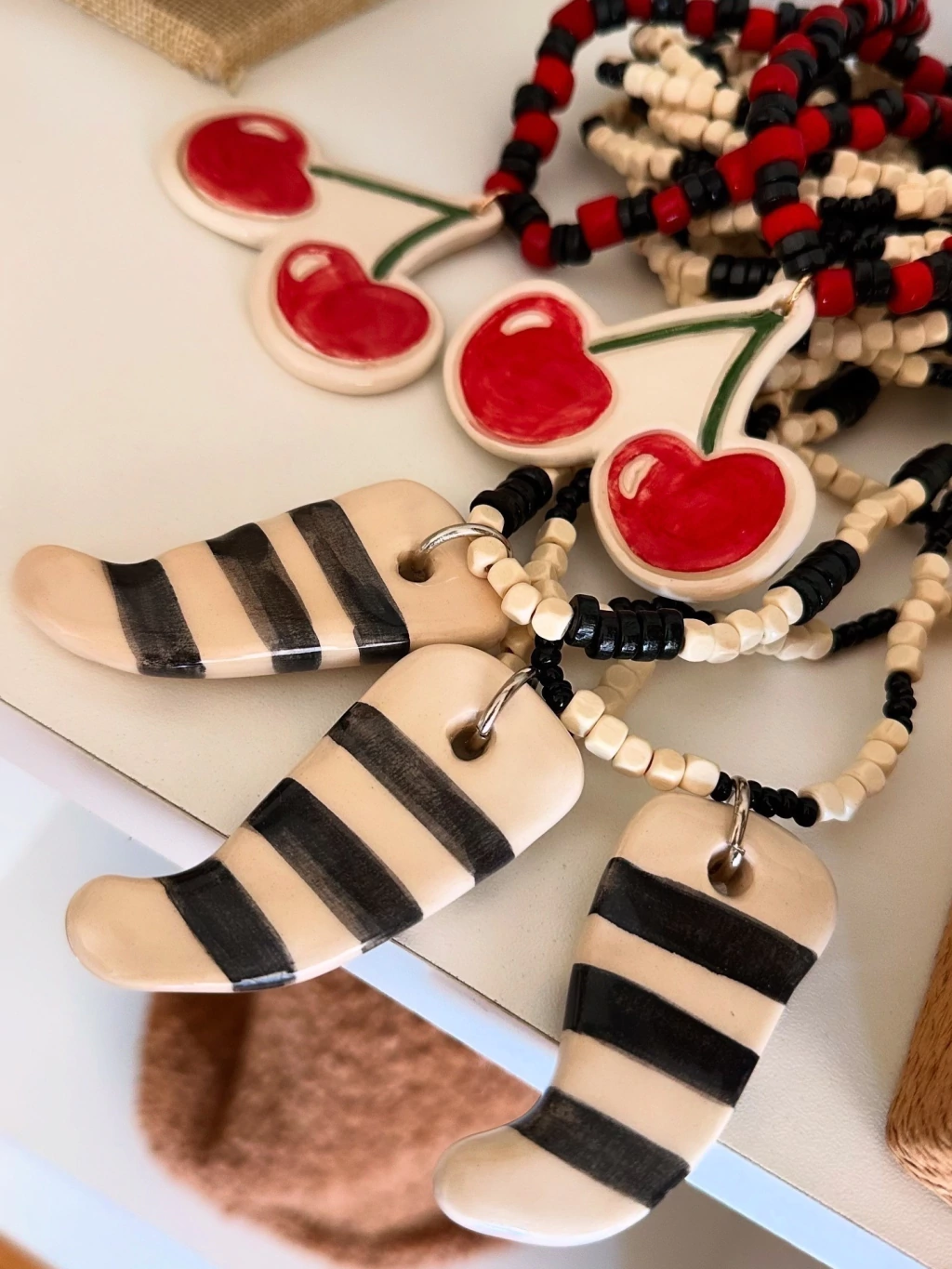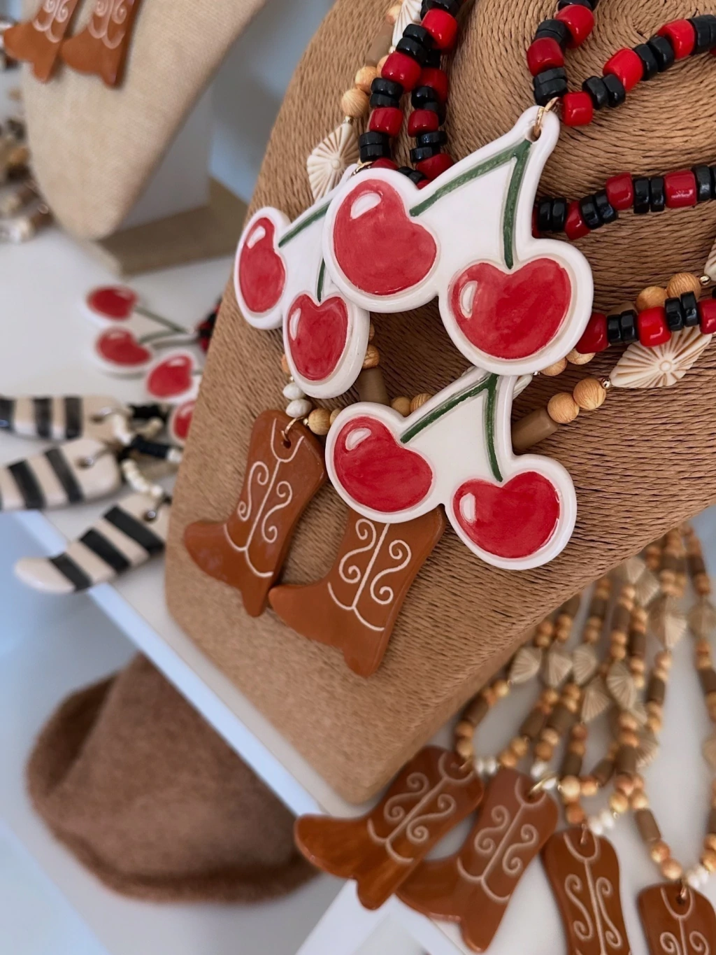 + MAXI DIJE CENTRAL CEREZA , DE CERÁMICA HECHO ARTESANALMENTE, PINTADO A MANO EN TONO ROJO Y VERDE . TAMAÑO DEL DIJE CERÁMICA : 7 CM X 6 CM APROXIMADAMENTE.