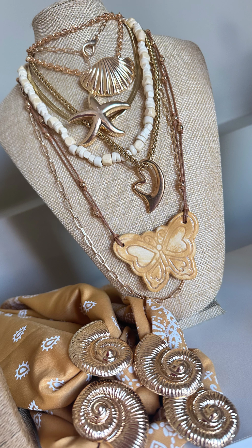 DIJE DE CERÁMICA MARIPOSA de COLOR DULCE DE LECHE VETEADO HORNEADO 100% HECHO A MANO, TIENTO COLOR CHOCOLATE DIBLE CON BOLITAS DE ALUMINIO. SE ATA CON BROCHE MOSQUETON O TB PODED ANUDARLO PARA USARLO MÁS CORTO . Largo de 85 cm aproximadamente , el dije mide 7,5 X 5 CM.